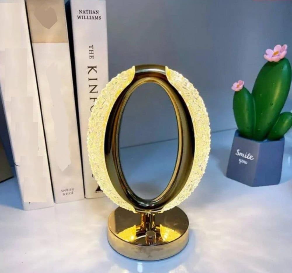 La silhouette ovale unique de l'abat-jour en cristal présente un centre creux qui produit un effet halo captivant lorsqu'il est illuminé. Fabriqué en verre cristal de haute qualité, l'abat-jour diffuse la lumière magnifiquement, projetant des motifs enchanteurs sur les surfaces environnantes. La base est faite de matériaux durables—soit en métal élégant, soit en bois riche—assurant la stabilité tout en ajoutant une touche esthétique à son design global.