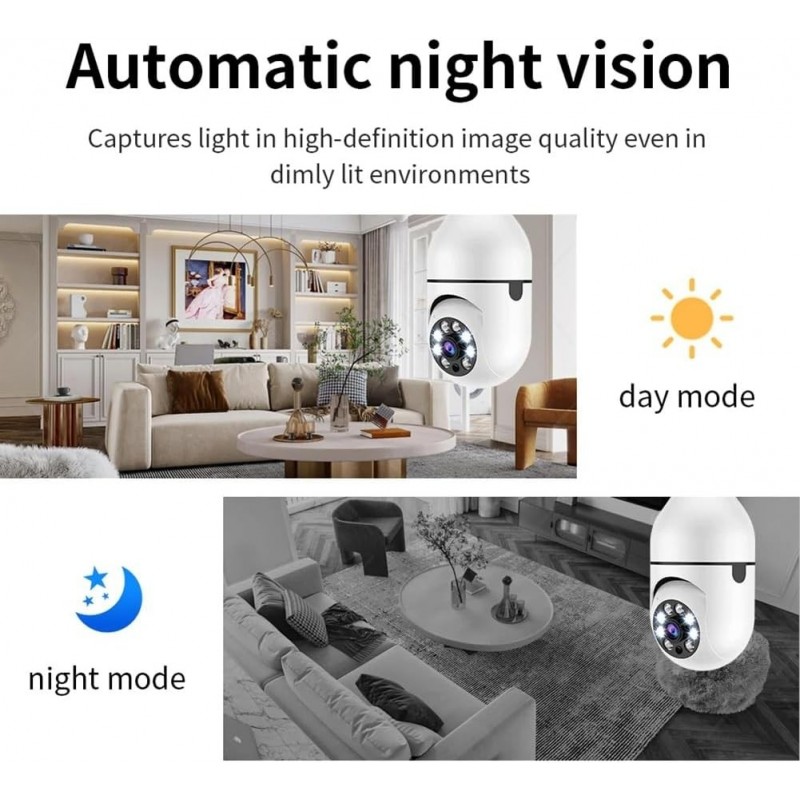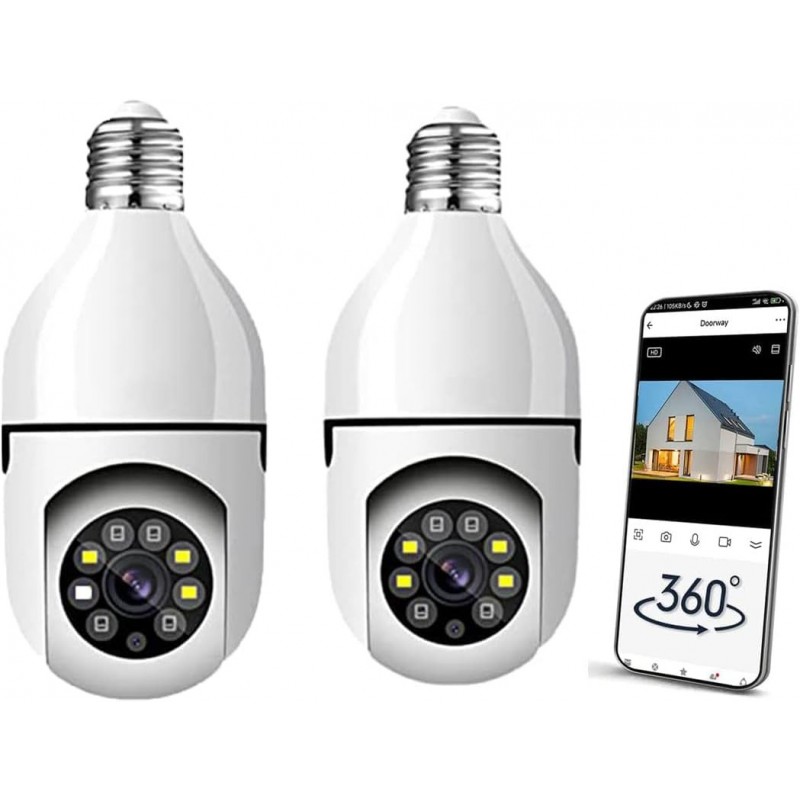Découvrez la Caméra Ampoule 360 Degrés WiFi Extérieur avec Vision Nocturne, Paquet de 2 Caméra Ampoule, Suivi Automatique, Audio. Cette caméra innovante offre une surveillance HD 1080P avec vision nocturne et audio bidirectionnel. Facile à installer dans une douille E27, elle garantit une sécurité optimale grâce à sa rotation panoramique de 355 degrés et sa détection de mouvement.