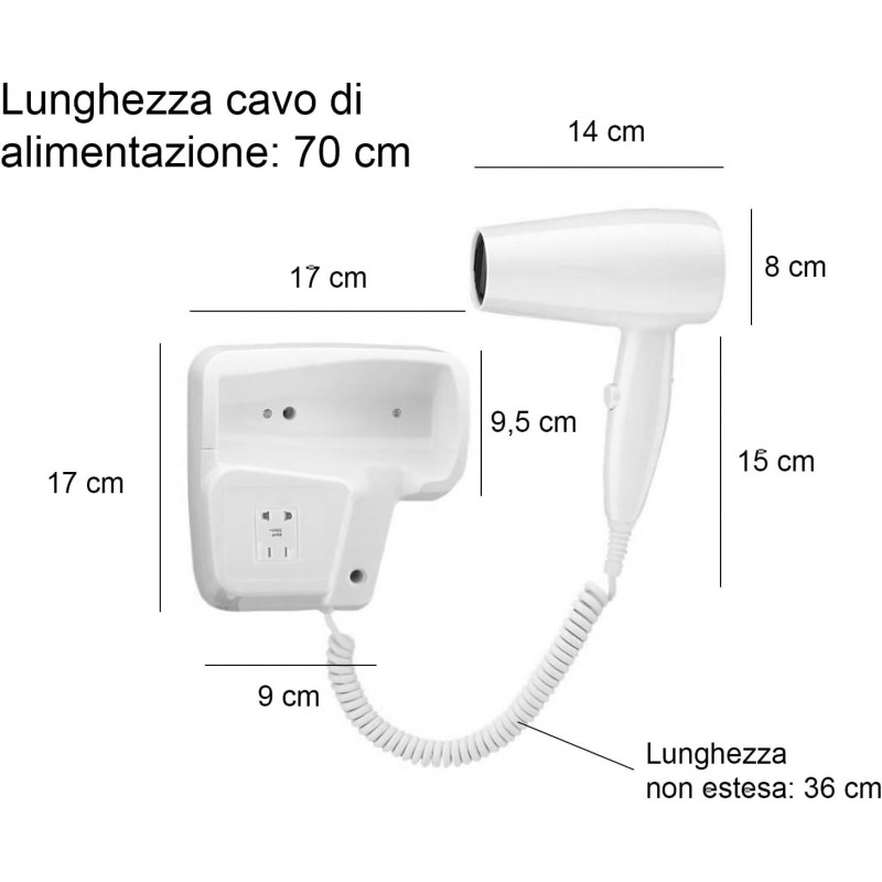 Présentation du Sèche-cheveux Phon mural TEMPO DI SALDI pour salle de bain Hôtel 1300 W, un parfait mélange de style et de fonctionnalité conçu spécifiquement pour les salles de bain modernes. Ce sèche-cheveux mural est un ajout essentiel à tout hôtel ou propriété locative, garantissant aux clients une expérience de séchage pratique.