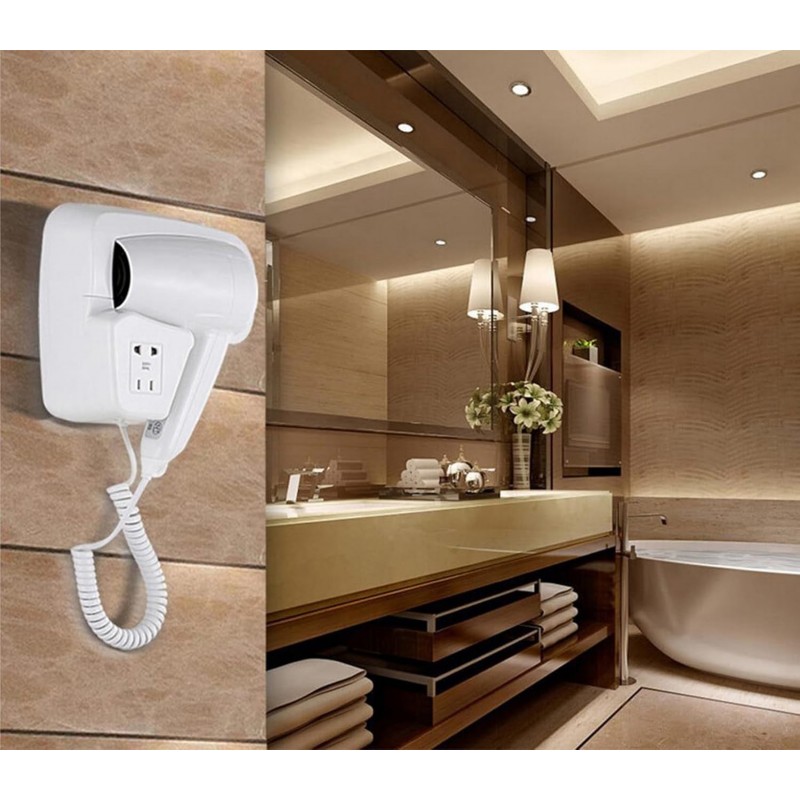 Le design élégant et compact présente une finition blanche brillante qui s'intègre parfaitement dans divers décors de salle de bain. Construit en plastique durable, ce sèche-cheveux est léger mais suffisamment robuste pour résister à une utilisation fréquente dans des environnements à fort trafic comme les hôtels et les salles de sport.