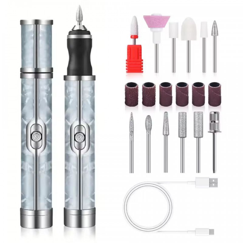 Cette perceuse à ongles polyvalente est équipée d'un ensemble d'embouts interchangeables adaptés à diverses applications. Du cône abrasif rose idéal pour lisser les ongles aux embouts de polissage arrondis parfaits pour le brillant, chaque accessoire est conçu pour répondre à vos besoins spécifiques. Les deux forets en métal uniques offrent un détail de précision, garantissant que chaque aspect de votre art des ongles est perfectionné.