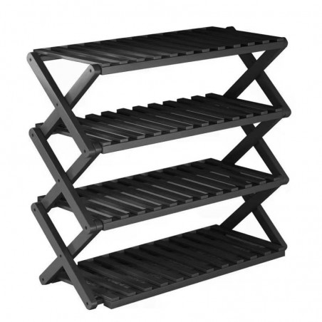 Le design à quatre niveaux offre un espace de rangement suffisant, vous permettant d'arranger soigneusement plusieurs paires de chaussures, des baskets décontractées aux bottes élégantes. Chaque niveau dispose d'étagères à lattes qui favorisent la circulation de l'air, garantissant que vos chaussures restent fraîches et bien ventilées. Les dimensions compactes le rendent adapté à divers environnements intérieurs tels que les entrées, les placards ou les vestiaires.