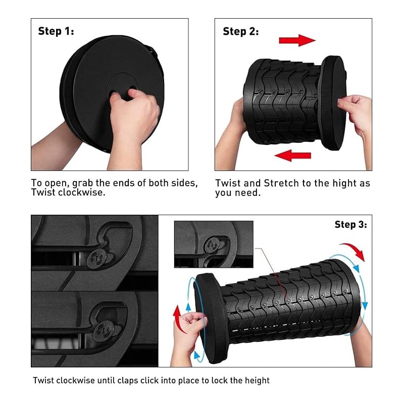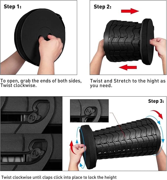 Le tabouret présente une forme cylindrique unique avec des segments emboîtables qui lui permettent de s'étendre et de se replier sans effort. Son dessus et son dessous bleu solide offrent de la stabilité tout en garantissant le confort pendant son utilisation. La finition lisse sur le dessus améliore non seulement son attrait esthétique, mais rend également le nettoyage facile.