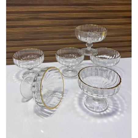L'ensemble comprend six bols plus petits ornés de motifs complexes qui présentent une combinaison époustouflante de crêtes et de motifs floraux. Ces éléments décoratifs ajoutent non seulement une touche d'élégance, mais reflètent également la lumière de manière magnifique, les rendant idéaux pour servir des apéritifs ou des desserts lors de rassemblements décontractés ou d'événements formels.