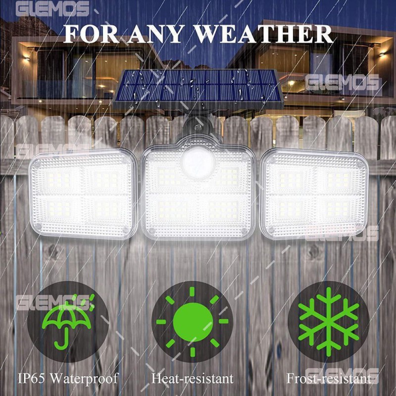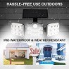 La configuration triangulaire unique de trois panneaux LED offre une large couverture, garantissant qu'aucun coin ne reste dans l'obscurité. Le panneau central comprend un capteur de mouvement rond qui détecte les mouvements, illuminant instantanément votre environnement lorsque cela est nécessaire. Cette fonctionnalité améliore la sécurité en dissuadant les visiteurs indésirables tout en offrant de la commodité lorsque vous vous déplacez dans vos espaces extérieurs.