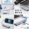Son design élégant et compact fait de cet adaptateur un compagnon idéal pour les professionnels en déplacement ou toute personne cherchant à optimiser son espace de travail. Sa finition métallique grise ajoute une touche moderne qui s'harmonise parfaitement avec n'importe quel ordinateur portable.