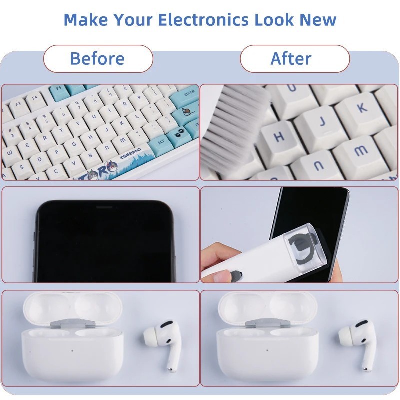 Découvrez le Kit de nettoyage de clavier d'ordinateur 7 en 1, brosse, un outil indispensable pour maintenir vos équipements électroniques propres. Compact et léger, il comprend une brosse douce, un spatule et un chiffon en microfibre pour éliminer efficacement la poussière et les débris. Idéal pour les claviers, casques et smartphones, ce kit garantit une propreté optimale sans endommager vos appareils.