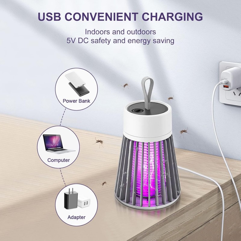Construit à partir de matériaux durables, le boîtier extérieur du Piège à moustiques électrique est léger mais suffisamment robuste pour résister aux conditions extérieures. L'alimentation USB intégrée permet des options de chargement polyvalentes, facilitant son utilisation lors de sorties en camping ou de pique-niques sans se soucier de trouver une prise.