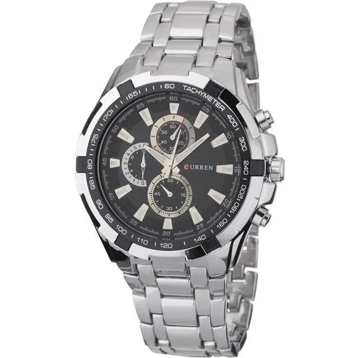 La montre présente un boîtier robuste en acier inoxydable, mesurant 42,00 mm de diamètre et 12,00 mm d'épaisseur, offrant une présence audacieuse à votre poignet. Le cadran noir frappant contraste magnifiquement avec les index et les aiguilles luminescents en argent, garantissant une visibilité même dans des conditions de faible luminosité.