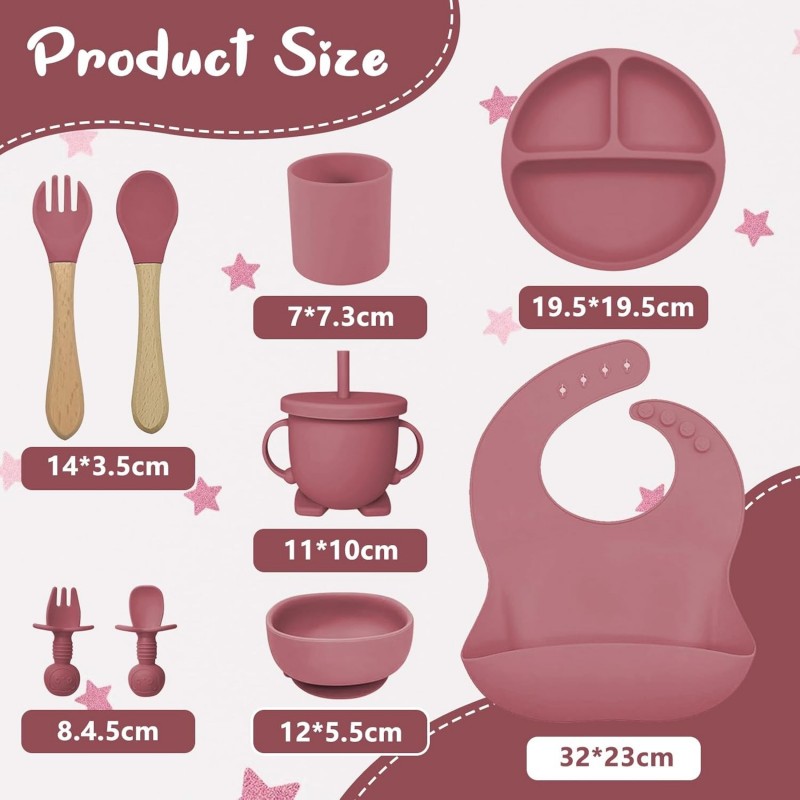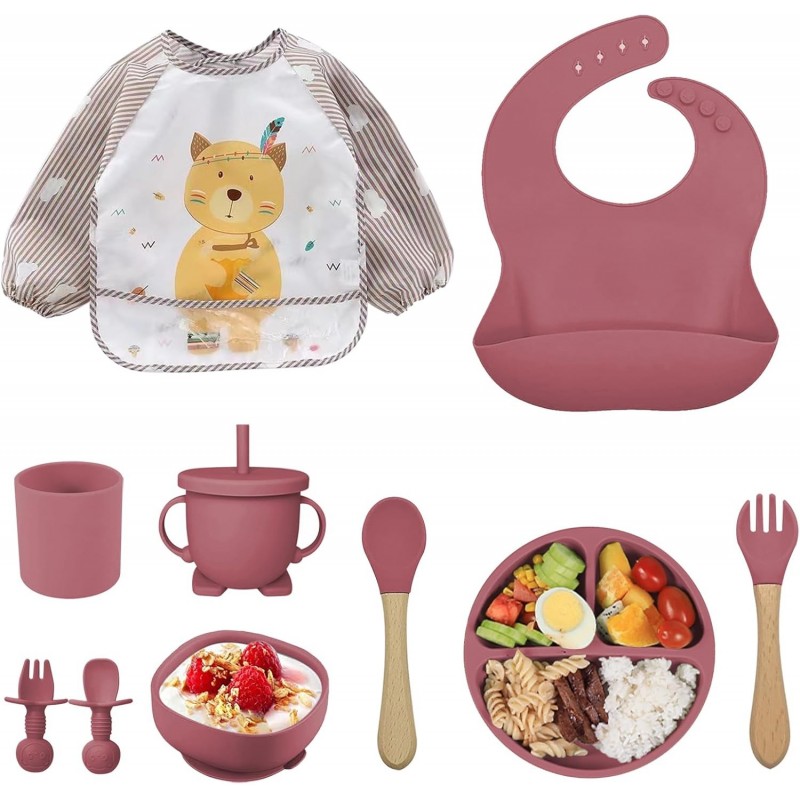 Présentation de lAssiette Bébé, Lot de 10, Coffrets repas Bebe Silicone, Enfant Set Couverts Vaisselle pour Sevrage Manger Apprentissage Ventouse, la solution parfaite pour les parents naviguant dans l'excitant parcours du sevrage et de l'alimentation autonome. Cet ensemble complet est conçu pour rendre les repas agréables et sans stress pour les enfants et les aidants.