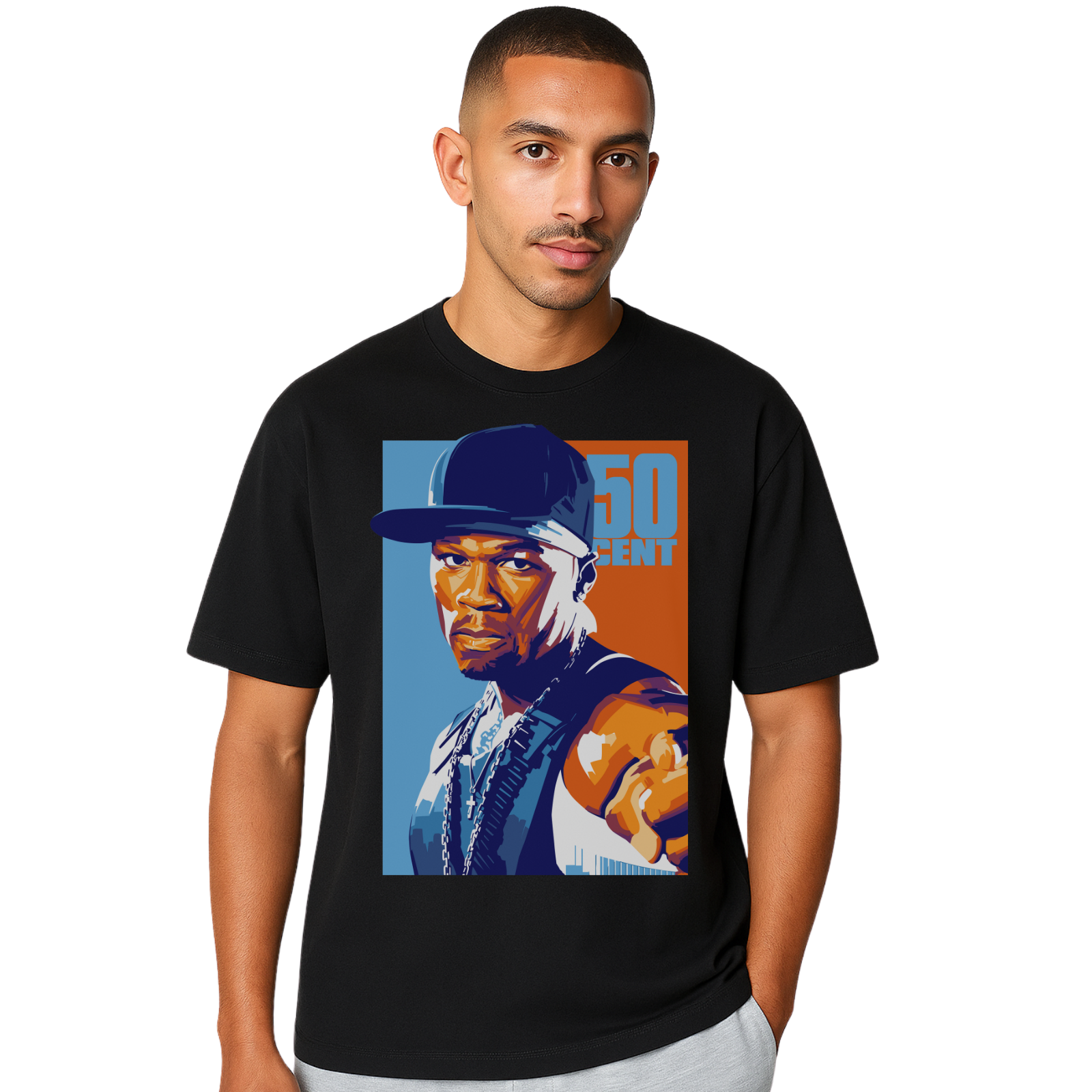 T-shirt Noir Streetwear Iconique avec Graphique 50 CENT — Style Urbain et Confort Quotidien