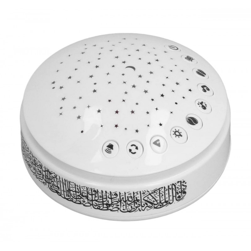 Transformez votre espace avec notre lampe de projection d'étoiles, conçue pour l'ambiance et la détente. Cette lampe en forme de dôme compacte présente une finition blanche élégante et une calligraphie arabe complexe. Profitez de plusieurs modes d'éclairage et de sons apaisants, parfaits pour les chambres d'enfants ou les espaces de méditation. Créez une atmosphère apaisante qui améliore votre décoration intérieure tout en favorisant un sommeil réparateur.