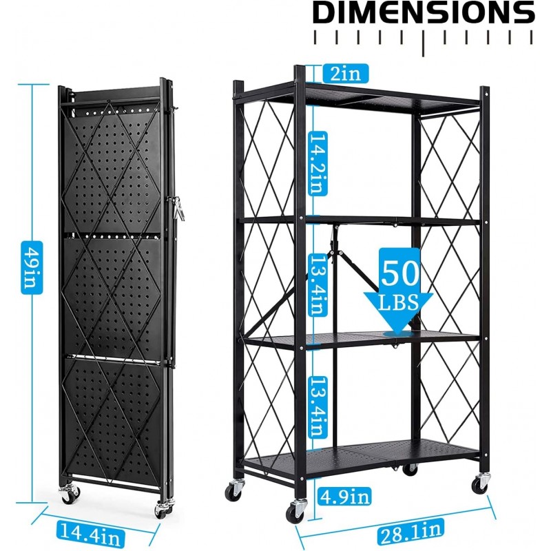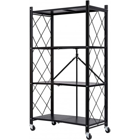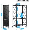 Présentation des étagères de rangement à 4 niveaux avec unités de rangement en métal pliables, racks de stockage, sans assemblage requis, étagère de rangement mobile robuste, un parfait mélange de fonctionnalité et de style pour votre maison ou votre espace de travail. Cette unité de rangement polyvalente est conçue pour améliorer votre organisation tout en offrant de nombreuses solutions de stockage.