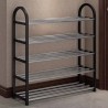 L'étagère à chaussures dispose d'un cadre robuste en métal de haute qualité avec une finition en poudre noire élégante qui assure durabilité tout en ajoutant une touche moderne à votre décoration intérieure. Avec quatre étagères horizontales spacieuses, elle peut accueillir plusieurs paires de chaussures sans effort. Chaque étagère est stratégiquement espacée pour tenir différents types de chaussures, des baskets de sport aux chaussures de soirée élégantes.