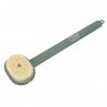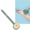 Le manche en plastique courbé mesure environ 30 à 38 centimètres de long, offrant un excellent levier et un bon contrôle. La tête de brosse circulaire, d'un diamètre d'environ 10 à 13 centimètres, est équipée de poils doux qui exfolient délicatement votre peau tout en garantissant un confort d'utilisation. Idéale pour tous les types de peau, cet outil polyvalent stimule la circulation sanguine et favorise une peau plus saine.