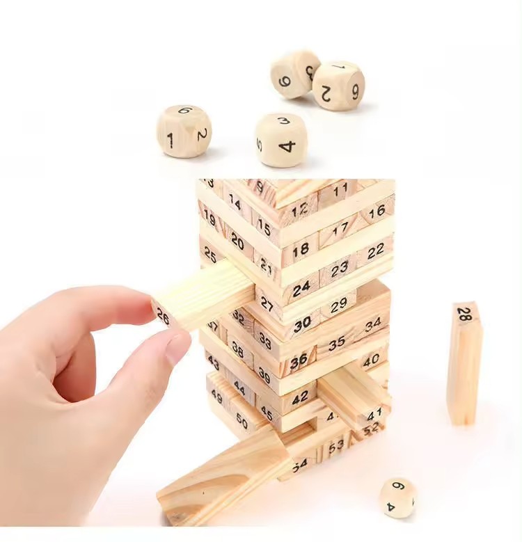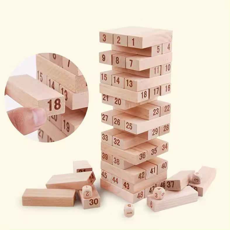 L'Ensemble comprend également un jeu classique comme le Wiss Game, composé de 54 blocs en bois naturels. Ces blocs sont non seulement durables mais aussi visuellement attrayants avec leur finition lisse qui prévient les éclats. Les enfants peuvent développer leurs compétences en coordination main-œil, tout en apprenant à compter grâce aux numéros clairement imprimés sur chaque bloc.