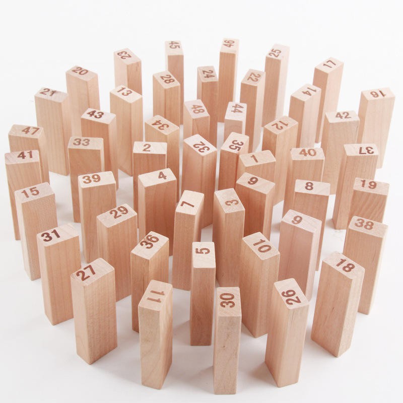 Le design innovant comprend des couches alternées de blocs pour assurer la stabilité tout en ajoutant un défi à chaque partie. Avec des numéros gravés allant de 1 à 48 sur chaque bloc, il devient facile de suivre les tours tout en introduisant des variations ludiques au jeu. Les blocs arborent une couleur boisée naturelle qui apporte chaleur et convivialité à votre espace ludique.