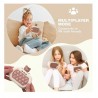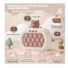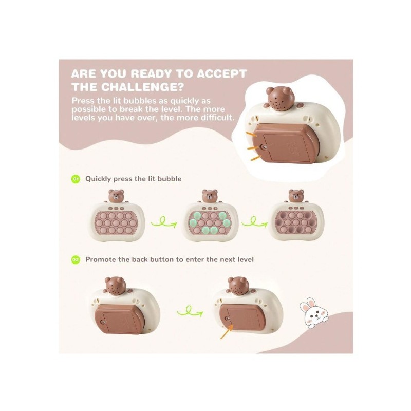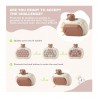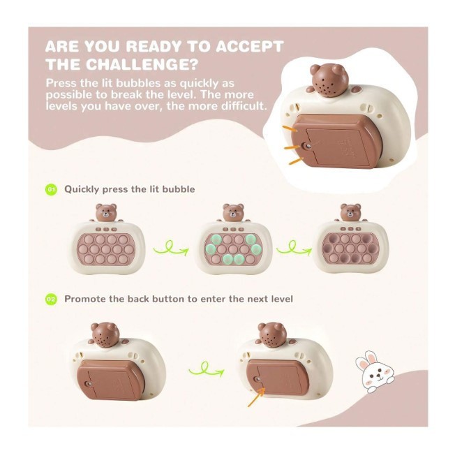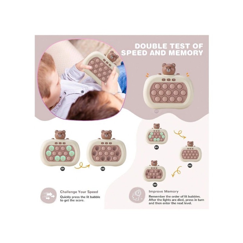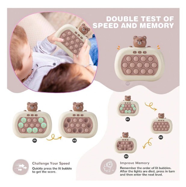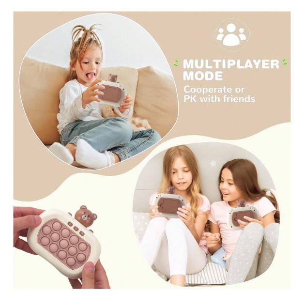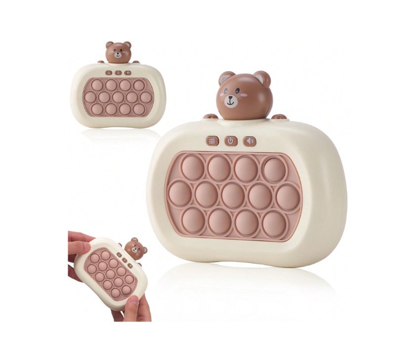 Le design ergonomique du jouet se caractérise par sa forme rectangulaire arrondie, facilement manipulable par les petites mains. Sa couleur crème douce et ses boutons marron clair créent une esthétique attrayante qui séduira aussi bien les enfants que les adultes. Le charmant ours en haut ajoute une touche ludique qui rend ce jouet encore plus engageant.
