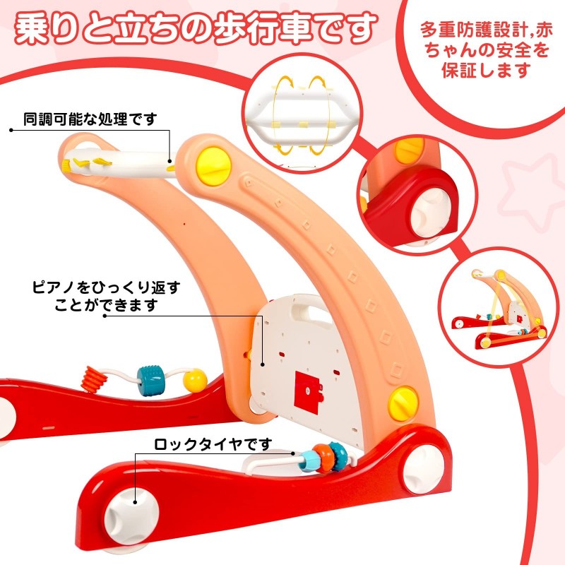 La marchette multifonctionnelle comprend un piano, un appui-bras pour l'apprentissage de la marche et 5 pendentifs amovibles. Elle encourage le développement de la coordination chez les tout-petits tout en stimulant leur curiosité avec des notes musicales.