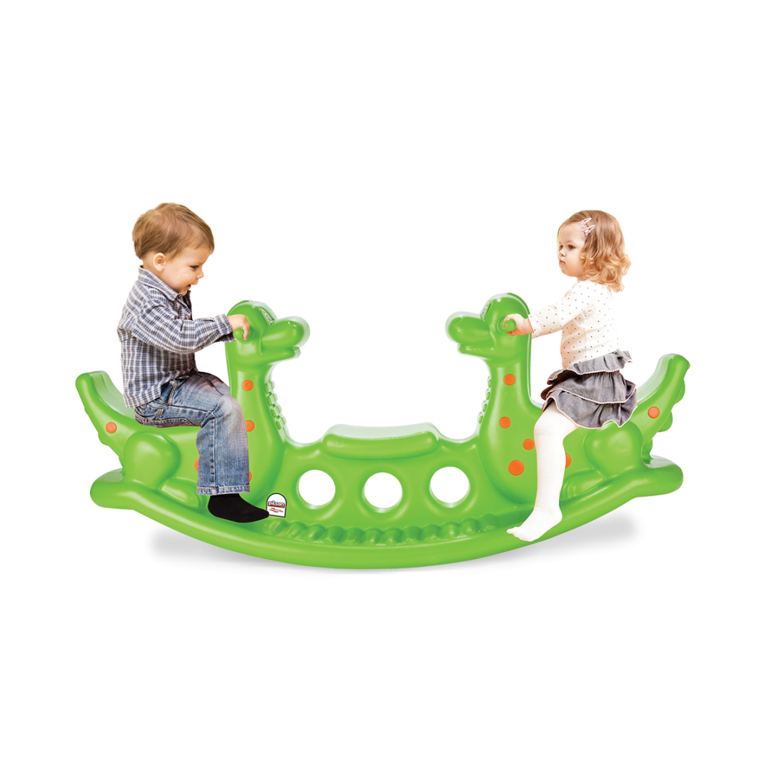 Balançoire dinosaure à design ergonomique attrayant pour jouer à deux.