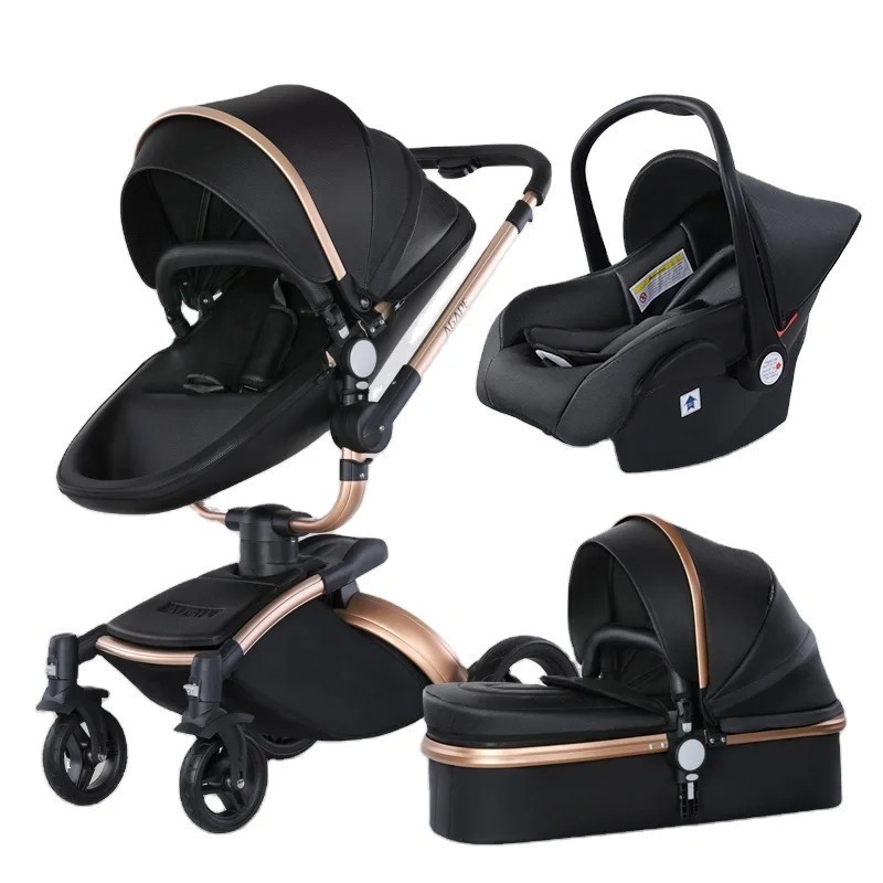 Poussette en cuir 3 en 1 pour bébé, légère et sûre, en forme d'œuf