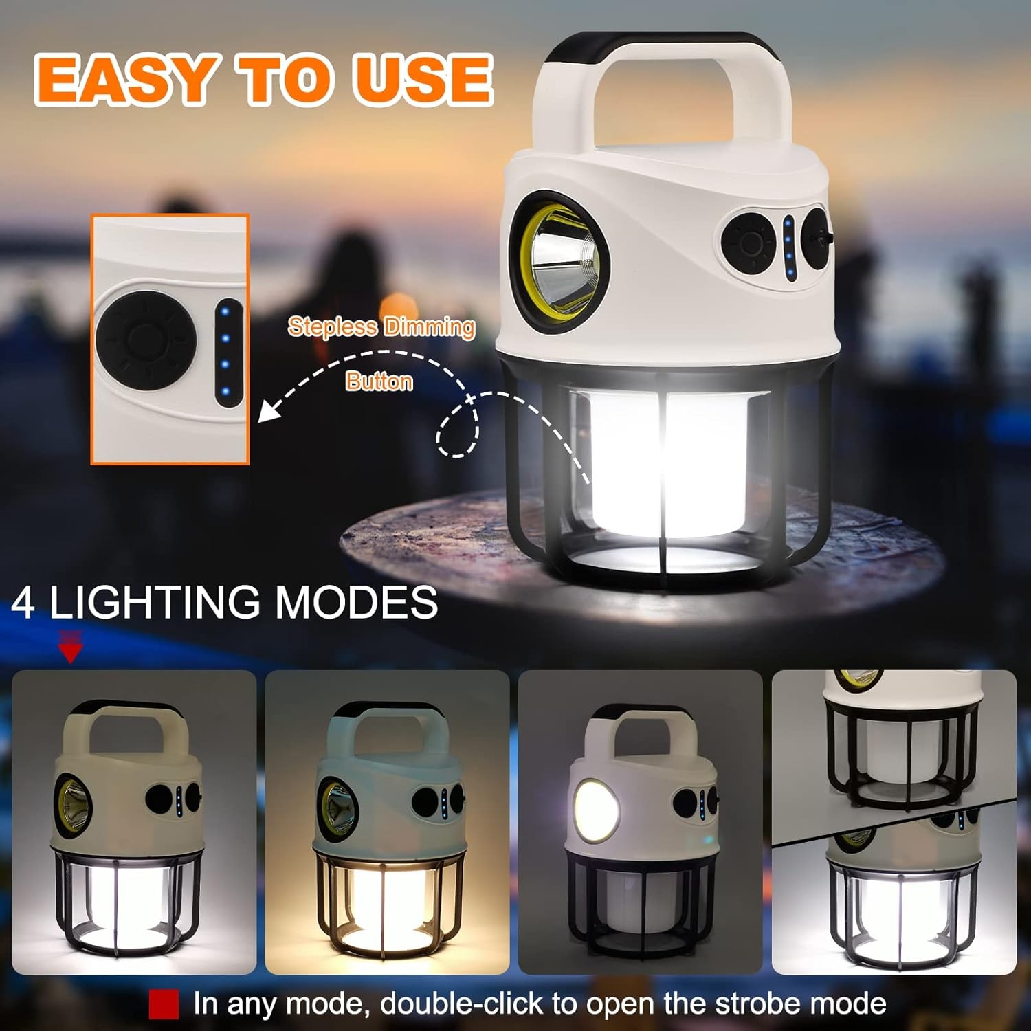 Découvrez la Kriogor Lanterne Camping LED Rechargeable, Lampe Camping Puissante 2400 mAh, IPX6, 4 Modes Lanterne Camping Rechargeable usb. Cette lanterne polyvalente dispose d'une puissante batterie rechargeable et de quatre modes d'éclairage réglables pour toutes vos aventures en plein air. Avec son design durable et sa résistance à l'eau, elle est parfaite pour le camping, la randonnée ou les situations d'urgence. Illuminez vos aventures avec un éclairage fiable !