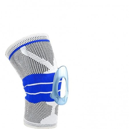 Le design moderne se distingue par une base blanche ornée de motifs en maille noire qui favorisent la ventilation. Des accents bleu vif ajoutent une touche dynamique, rendant cette genouillère non seulement fonctionnelle mais aussi esthétique. La structure semi-rigide intégrée garantit un soutien optimal du genou pendant vos efforts physiques.